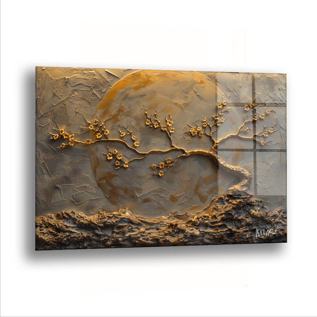 Bronz Ağaç ve Ay - Cam Tablo