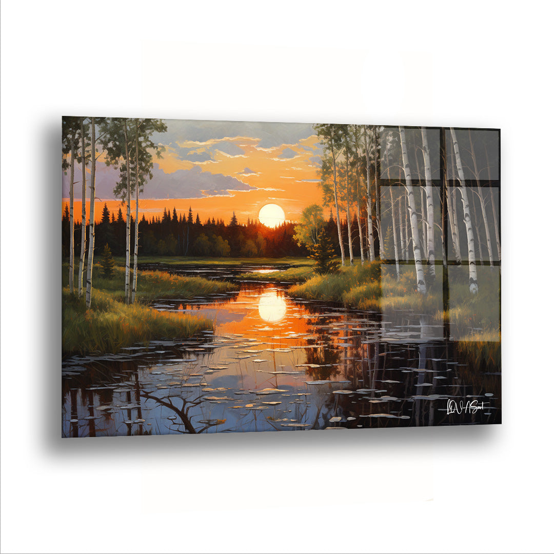 Gün Batımındaki Sular Arazisi - Cam Tablo