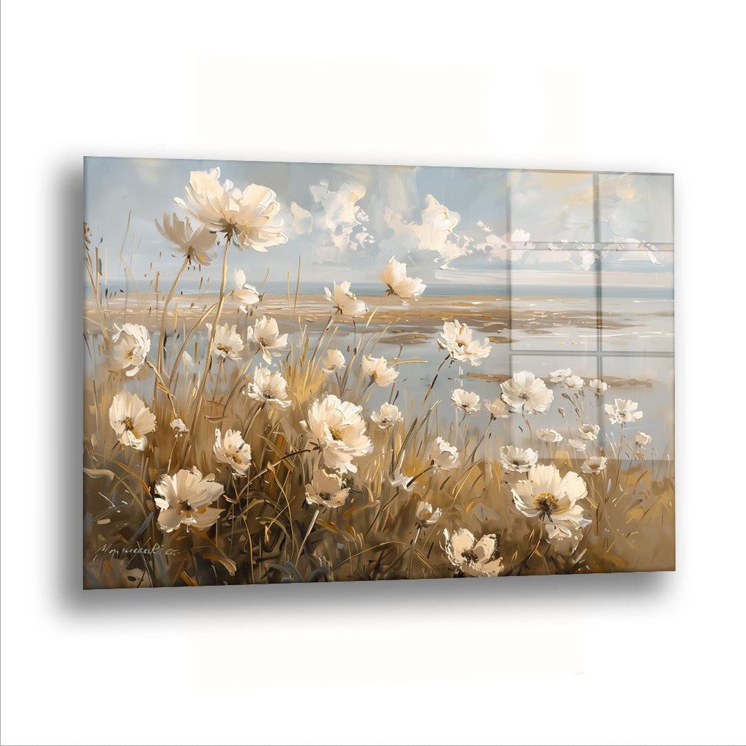 Güzel Manzaradaki Çiçekler - Cam Tablo