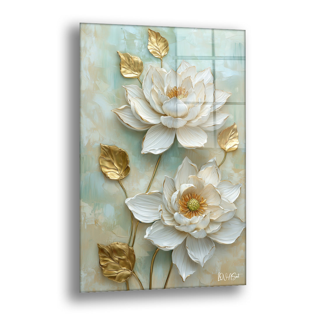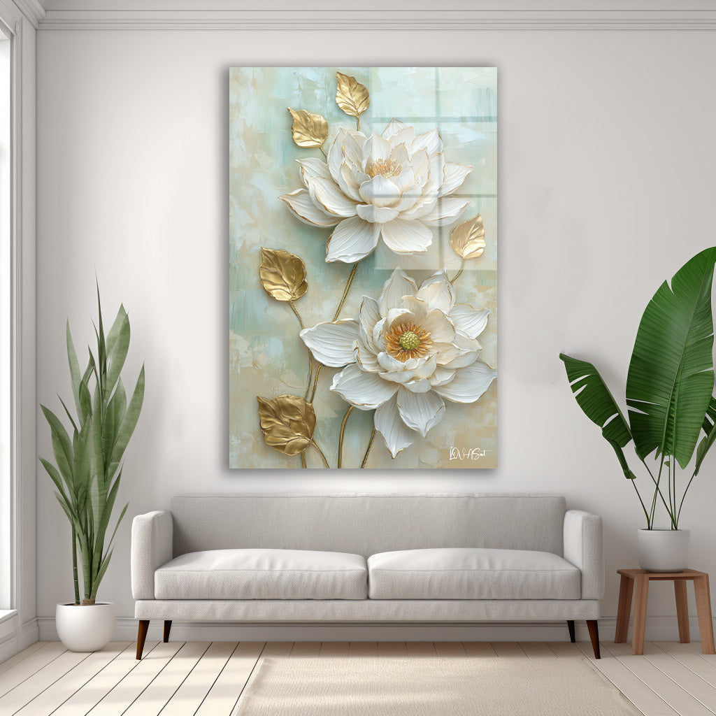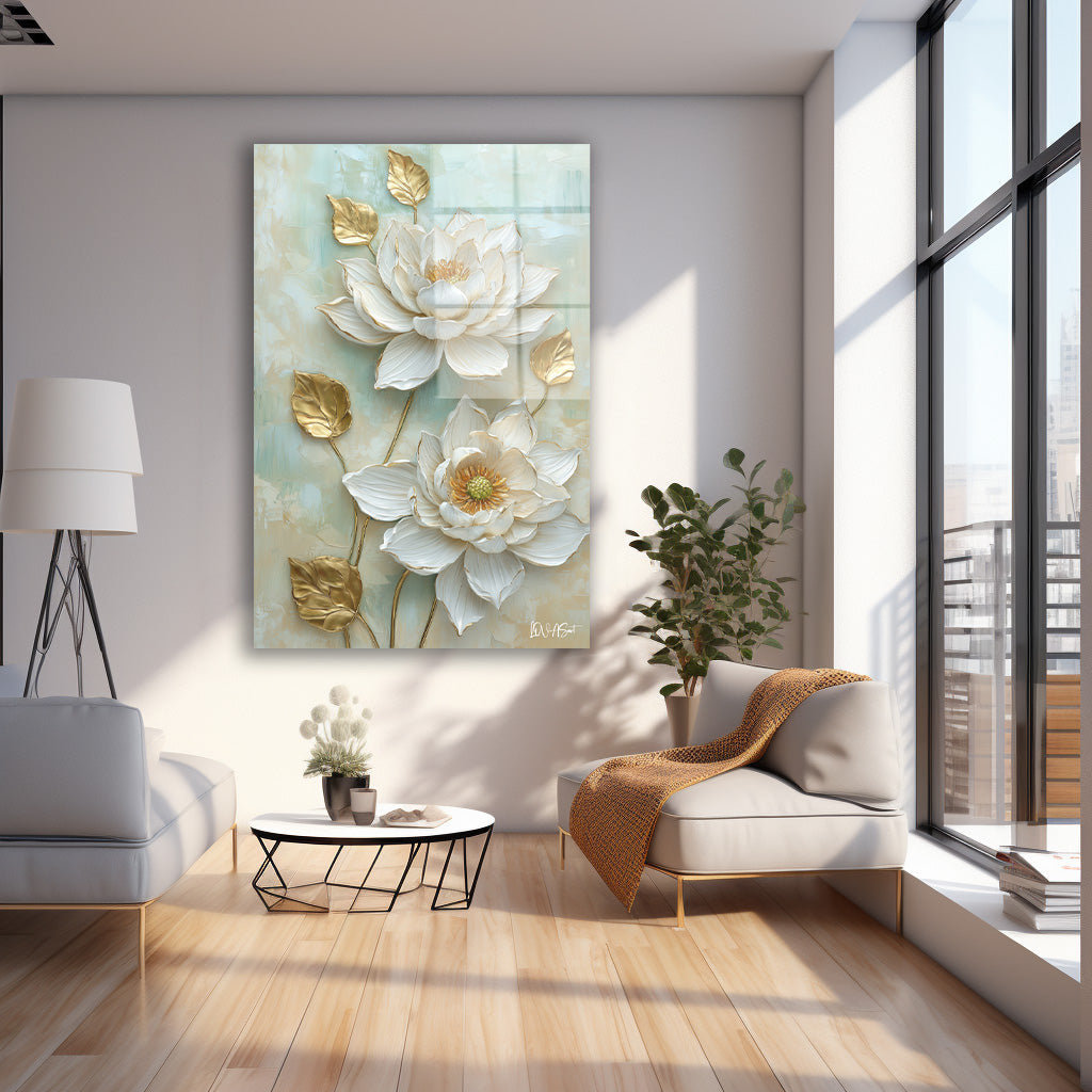 Mint Yeşili Çiçekler - Cam Tablo