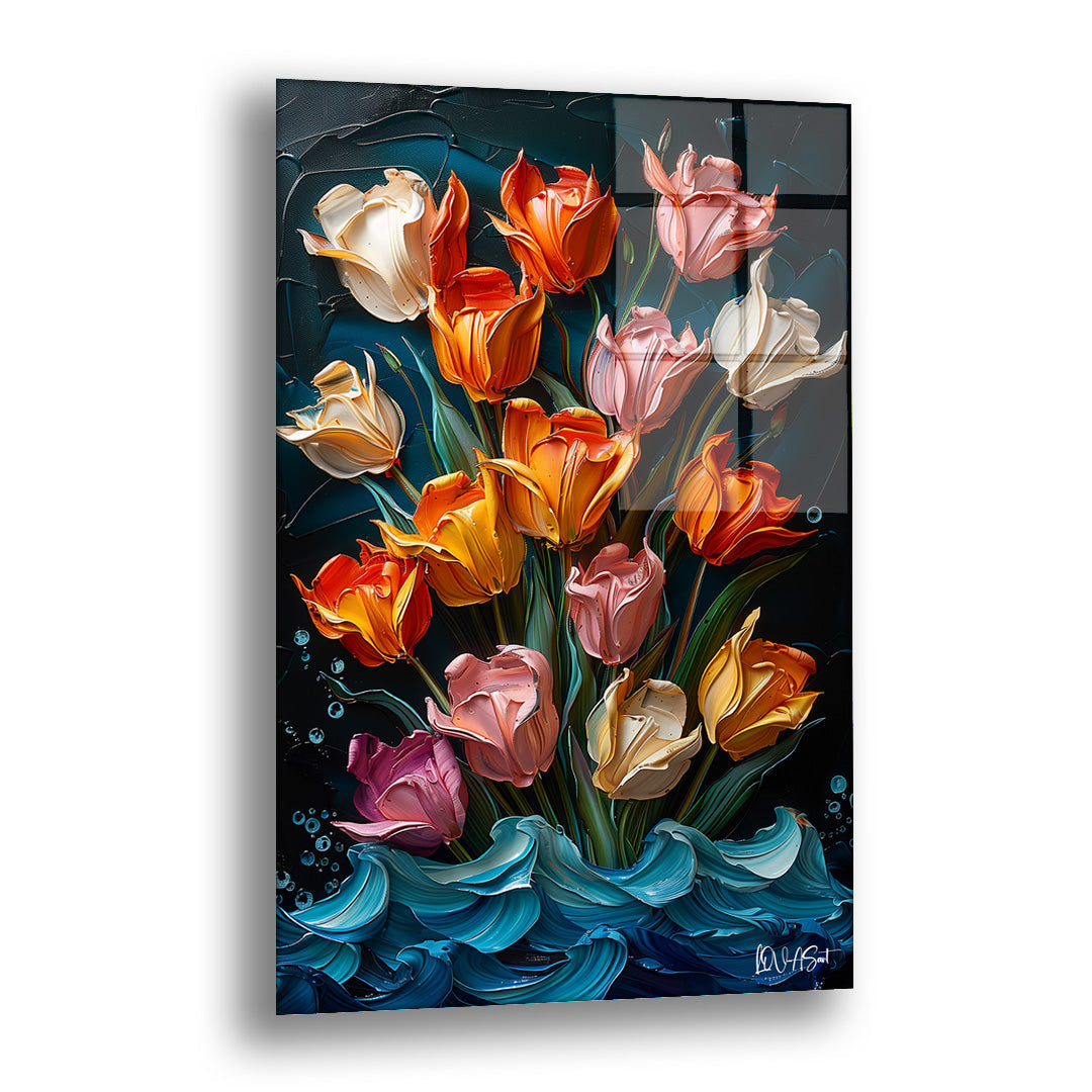 Rengarenk Çiçekler - Cam Tablo